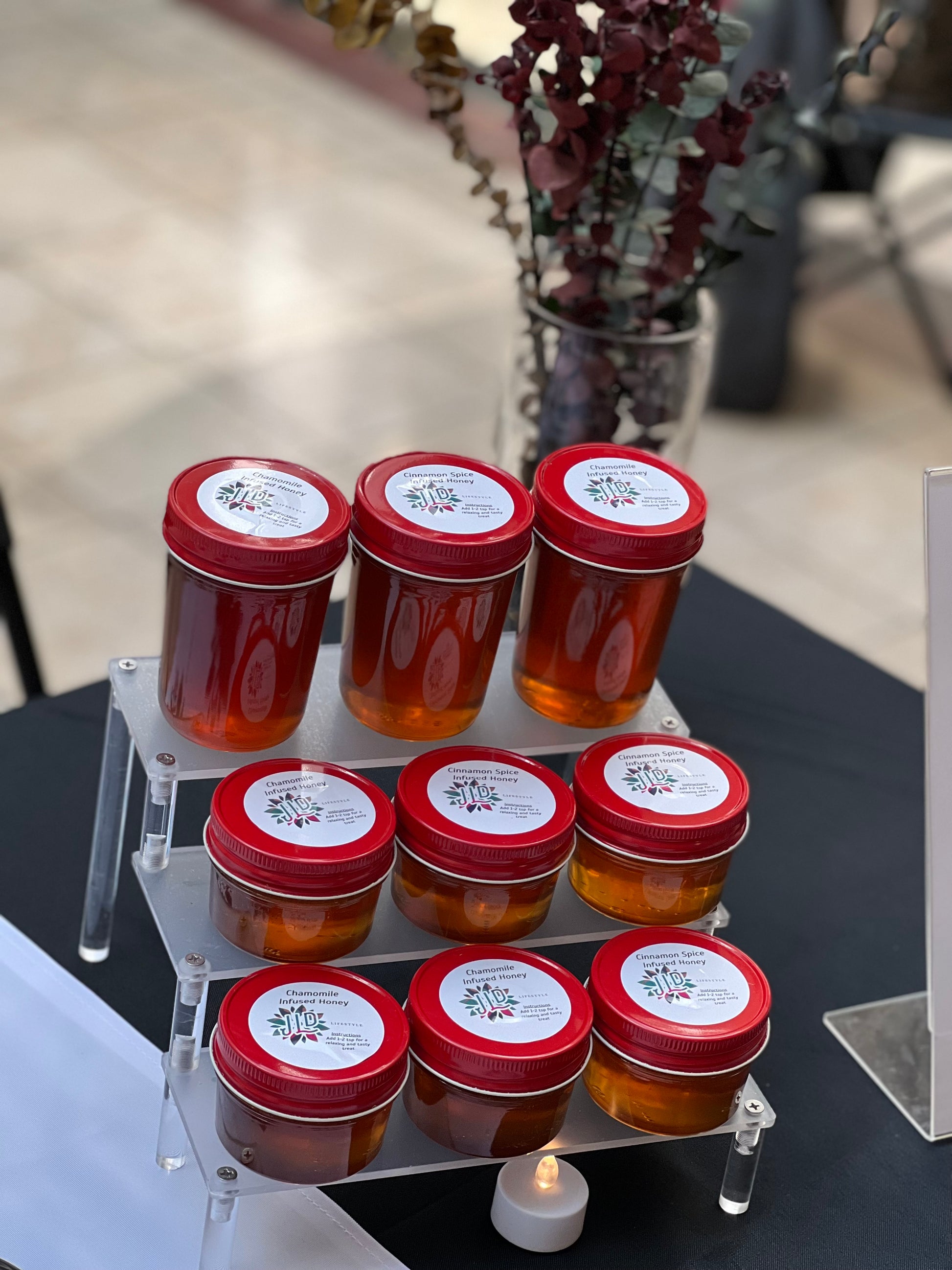 Our locally infused honey is a delightful fusion of nature's goodness, infused with organic Chamomile flowers. This harmonious blend of ingredients is not only designed to soothe but also to tantalize your taste buds. Experience the soothing comfort and exquisite flavor of this honey that's crafted with care to elevate your culinary experiences.